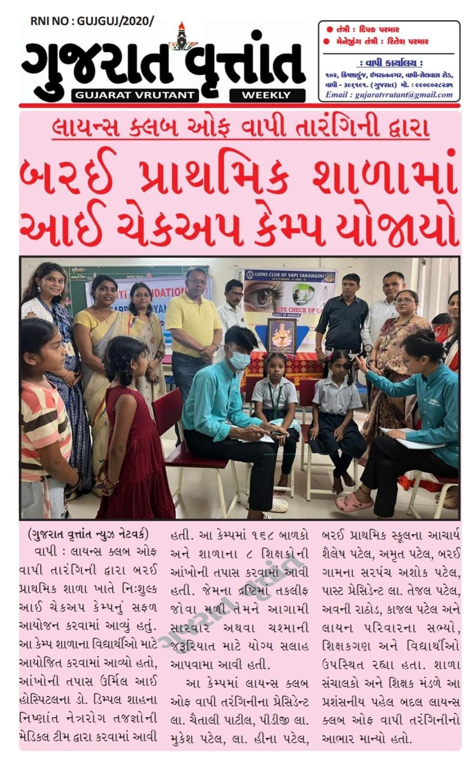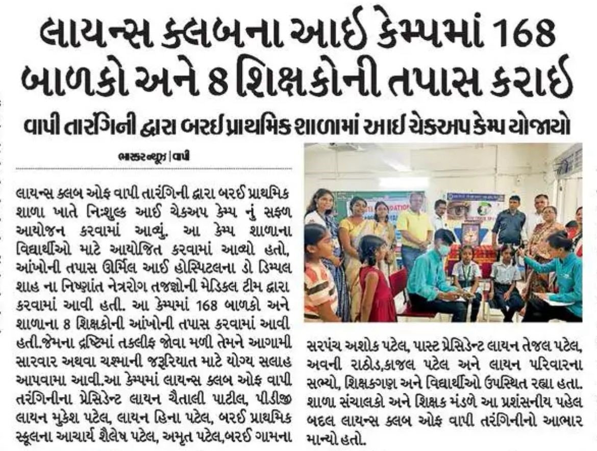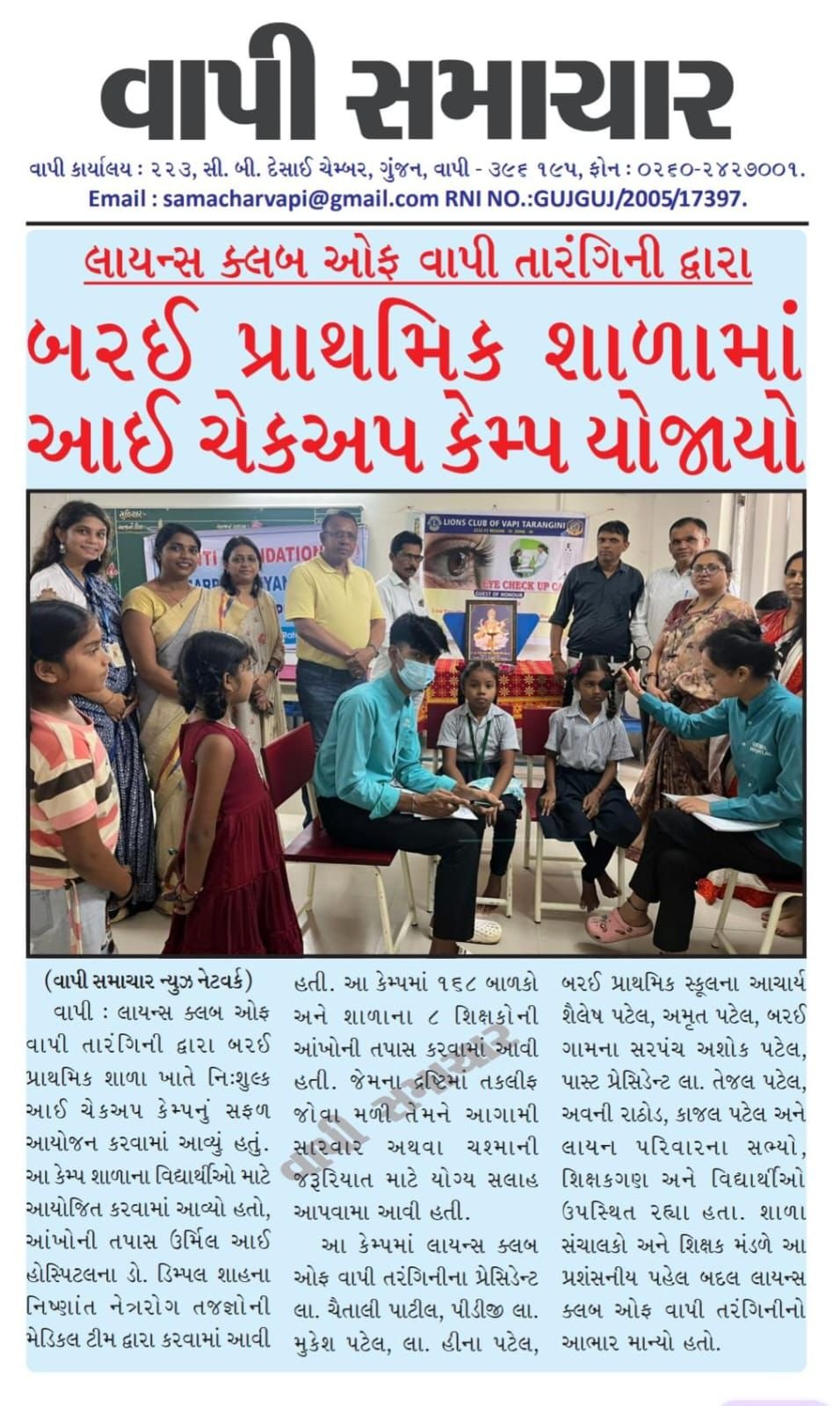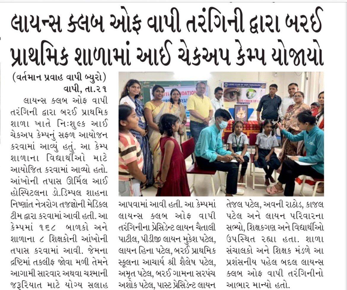 Lions Club of Vapi Hosts Successful Eye Health Camp with Urmil Eye Hospital