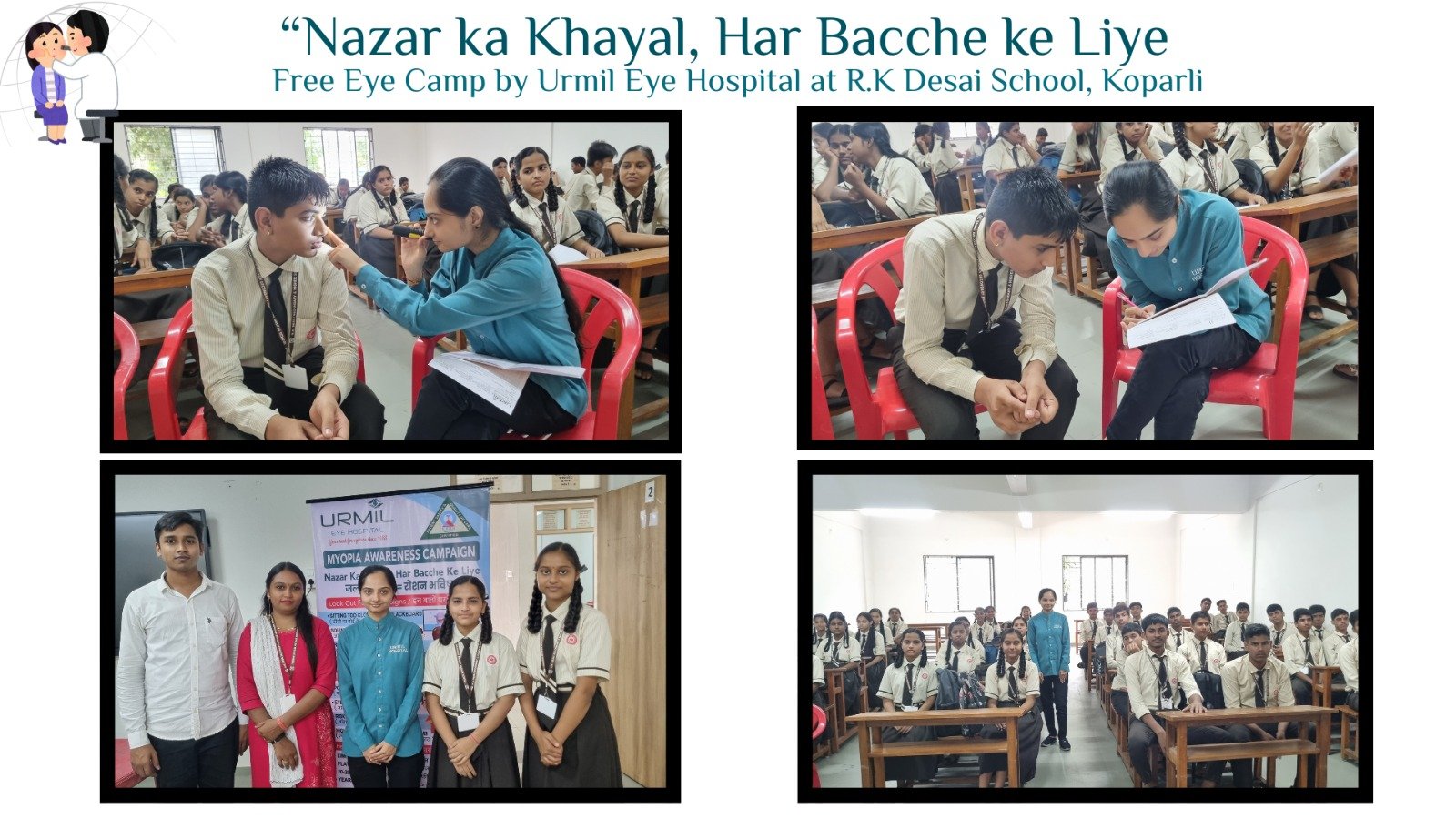 Urmil Eye Hospital, in collaboration with the Lions Club of Vapi, organized a successful eye health camp at R.K. Desai School, Koparli. The initiative was aimed at providing early detection, preventive care, and vision awareness among school children and teachers.